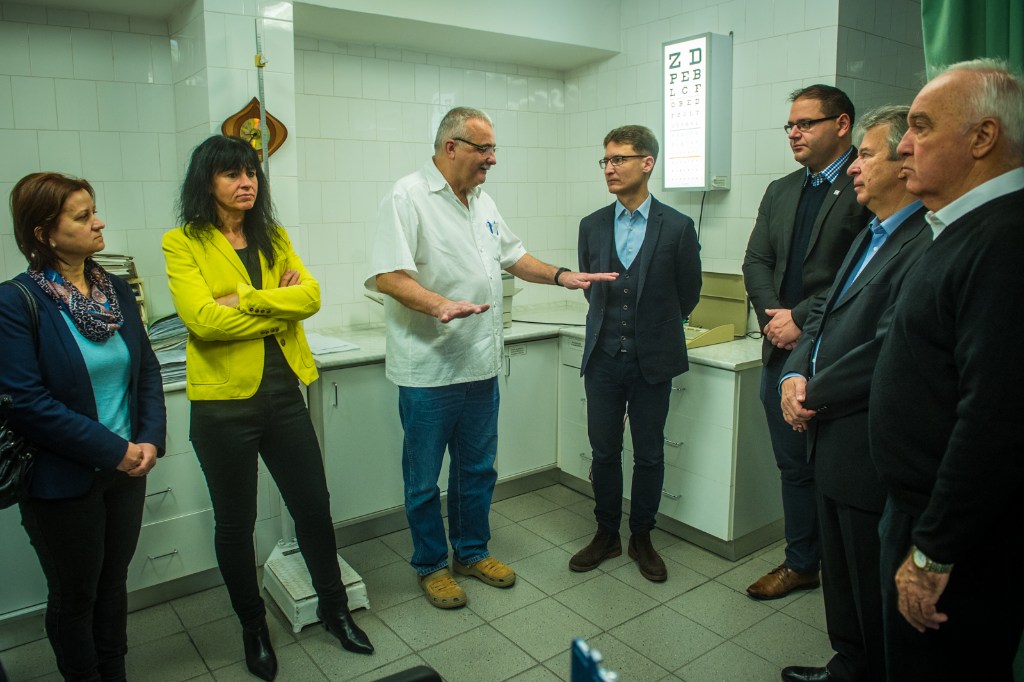 A bejárás résztvevői megnézték a jól felszerelt reumatológiai szakrendelőt és a helyszínen működő labort is. A háziorvosi rendelőben éves szinten 12 ezer embert látnak el, ami a reumatológiai rendeléssel együtt már 16-17 ezer főt jelent.