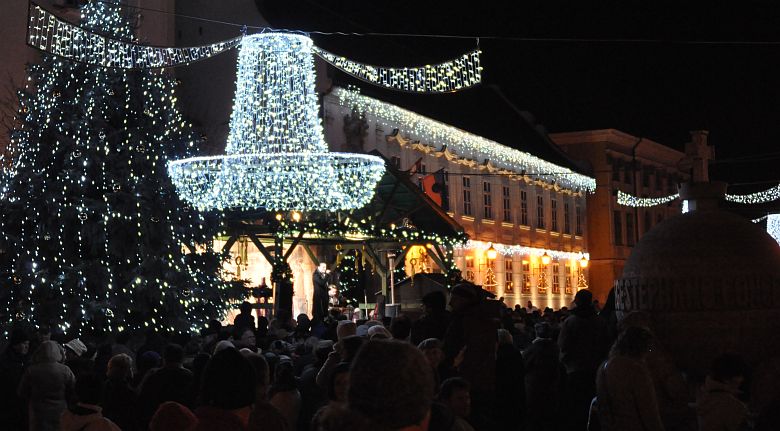 Advent első vasárnapján a Belváros épületei is ünnepi díszbe öltöztek, idén ünnepi díszkivilágítást kapott a Városháza homlokzata is. Az idei adventi időszakban nem csak a Városház téren várják programokkal a családokat, hanem végig a Fő utcán és a Magyar Király előtti téren. Összesen 52 különböző óvodai és iskolai csoport szerepel majd és mintegy 1500 gyermek, fiatal lép színpadra.