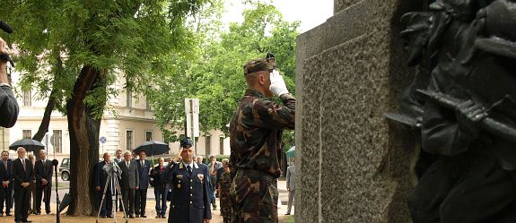 Bory Jenő szobrászművész „17-es Gyalogezred” felújított emlékművének újraavatására került sor a Zichy ligetben. Az ünnepség a himnusz hangjaival kezdődött, majd Warvasovszky Tihamér polgármester köszöntő szavai után a Honvéd Művészegyüttes produkciója következett.