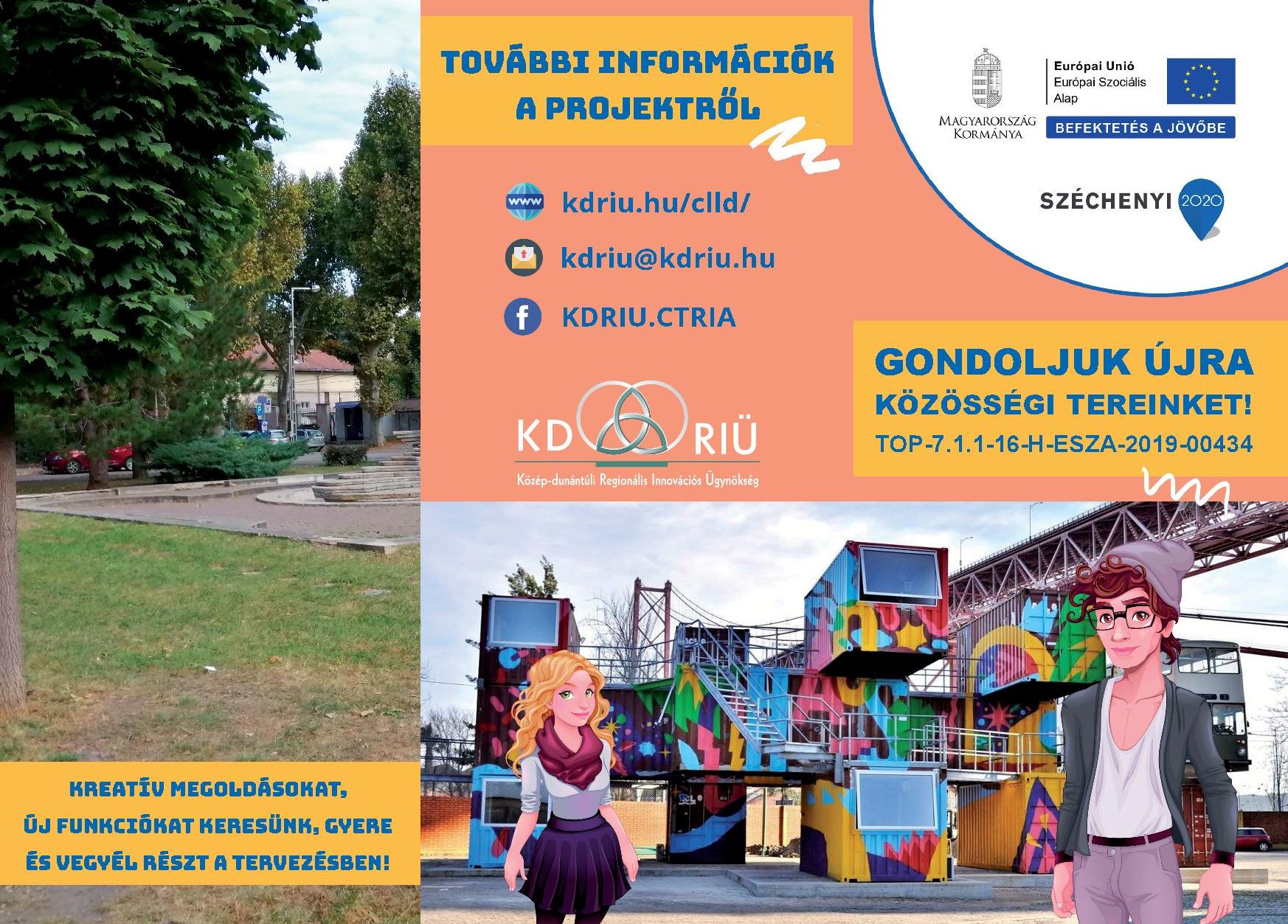 A KDRIÜ arra hívta fel a Székesfehérváron tanuló középiskolás diákokat, hogy segítsenek újragondolni azokat a helyeket, ahol délutánonként a szabadidejüket töltik. A diákoknak videóban kell bemutatni, hogy melyik közösségi teret alakítanák át, milyen elemekkel, funkciókkal egészülne ki a terület a tervezés során és hogyan nézne ki a megújult közösségi tér.