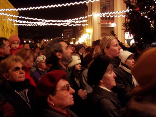 Több százan gyűltek össze első adventkor a Városház téren. Az adventi koszorún az első gyertyát a város polgármestere Warvasovszky Tihamér és Kiss János nagyprépost gyújtotta meg. A polgármester ünnepi köszöntőjében hangsúlyozta, hogy a karácsonyi ünnepkör megadja a lehetőséget mindnyájunknak, hogy egy időre elfelejtsük mindennapjaink fárasztó gondjait, s azokra is gondolhatunk, akikre az év közbeni rohanás során csak kevesebb időnk jut.