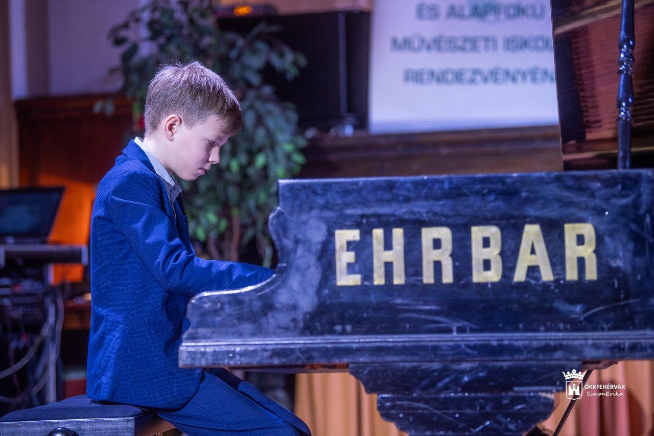 Az ünnepi beszédet követően Balogh Ádám ült a zongora mellé és F. Chopin: Cisz-moll keringőjét adta elő, majd Székesfehérvár polgármestere köszöntötte a jeles évforduló alkalmából a hallgatóságot. „110 év több generáció zenei nevelését és fejlődését öleli fel. E több mint száz év alatt hány, de hány embernek kellett a megfelelő pillanatban olyan döntést hoznia a különböző történelmi korszakokban, hogy az 1900-as évek elején született álomból valóság váljon?” - tette fel a kérdést dr. Cser-Palkovics András, majd így folytatta: olyan döntések születtek, amelyek fejlődést, újrakezdést, növekedést, sikereket hoztak, megteremtve a hangszeres zenei nevelés hagyományait Székesfehérváron. A Zeneiskola biztos alapjainak és gyarapodó éveinek másik nagy titka, hogy mindig a jövőről szólt és szól ma is. Ezt tanúsítja ez az este is, ahol az ifjúság lépett színpadra, és a közönség soraiban itt ülnek azok a régebb óta fiatalok, akik szülőként, nagyszülőként a hangszereket tanulva, azokon játszva váltak zenebarátokká. Székesfehérvár polgármestere köszönetet mondott azért, hogy a zeneiskolások részt vesznek a város közösségi életében, számos kulturális rendezvényen, eseményen lépnek fel.