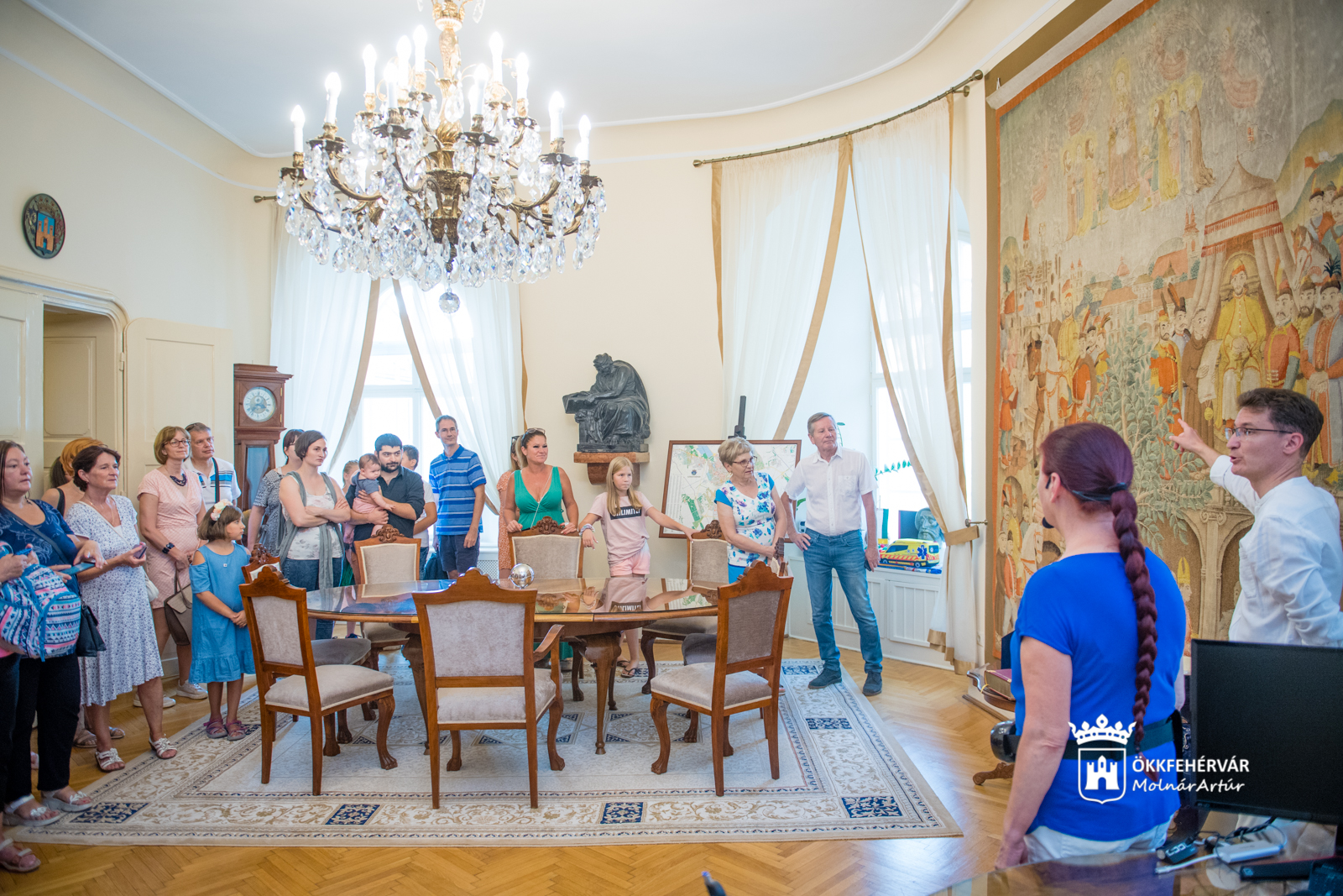 A körséta állomásai között szerepeltek a folyosón álló eredeti, Fehérvár legrégebbi alkotásai között számon tartott kis Mária-szobor, a Szent Korona, a koronázási kard és az országalma hiteles másolatai, valamint az 1948-ban lemázolt Aba-Novák-szekkók is. A látogatók megnézték a Díszterem emlékeit és értékeit az Aranybulla-falfestménnyel, a történelmi zászlókkal, valamint a bazilikában folyó ásatások során előkerült középkori korpuszt. Majd betekinthettek a polgármester dolgozószobájába, többen kipróbálták a városvezető székét is, és egy újabb szögből nézhették meg Mujkó szobrát. A körséta a zegzugos folyosókon keresztül a Díszterem karzatáig vezetett, az ünnepi zászlók mellől láthatták a résztvevők a közgyűlés és számos rangos program helyszínét, a nagytermet.