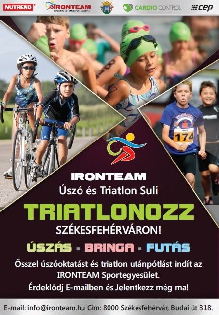A székesfehérvári Ironteam Szabadidő és Tömegsport Egyesület egyedülálló módon, „Úszó és Triatlon Suli” néven úszásoktatást és triatlon utánpótlást indít 2014.október 1-től. A toborzó időszak szeptember 15-től, október 1-ig tart. Ez idő alatt szeretnék minél több fiatalnak bemutatni a triatlont, amely gyors és töretlen virágzásának köszönhetően 2000 óta már az olimpiai sportágak között szerepel.