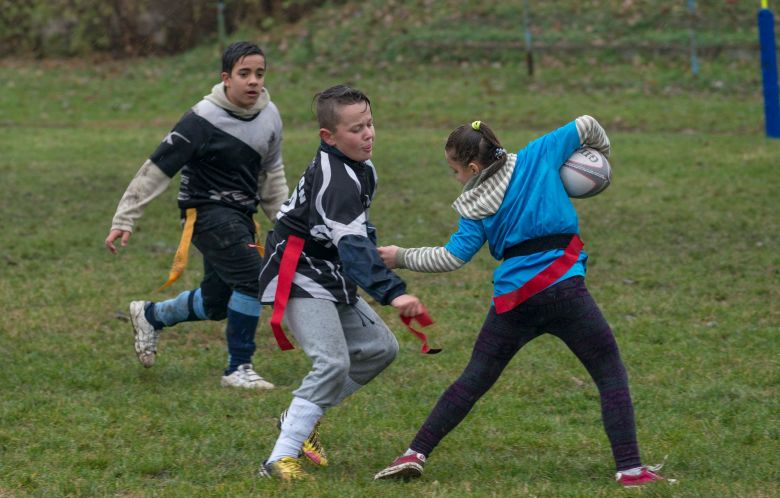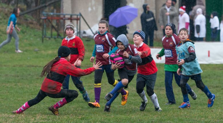 Az eső áztatta Köfém-pályára azokat is várták, akik még csak ismerkednek a sportággal. A legkisebbek az ütközés és testi kontaktus nélküli szalagos rögbit játszották. A speciális szabályok révén a kisebb testalkatú lányok a nagyobb fiúkkal is „felvették a kesztyűt”.