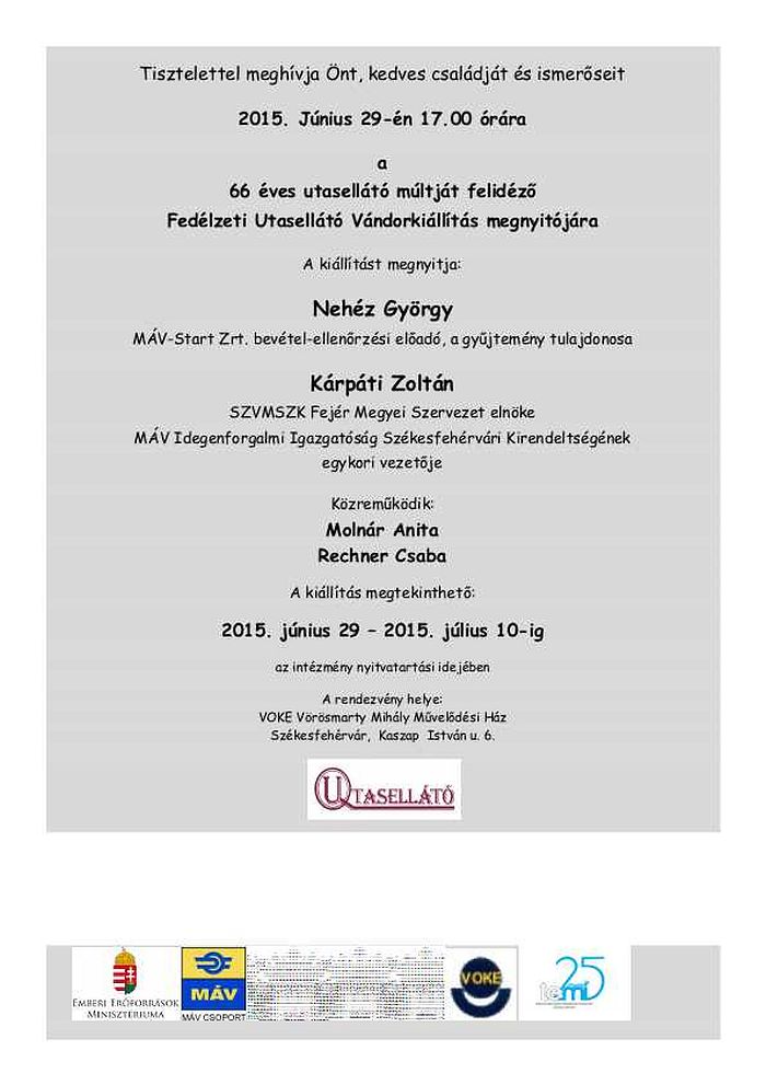 Utasellátó Vándorkiállítás nyílik hétfőn a VOKE-ban