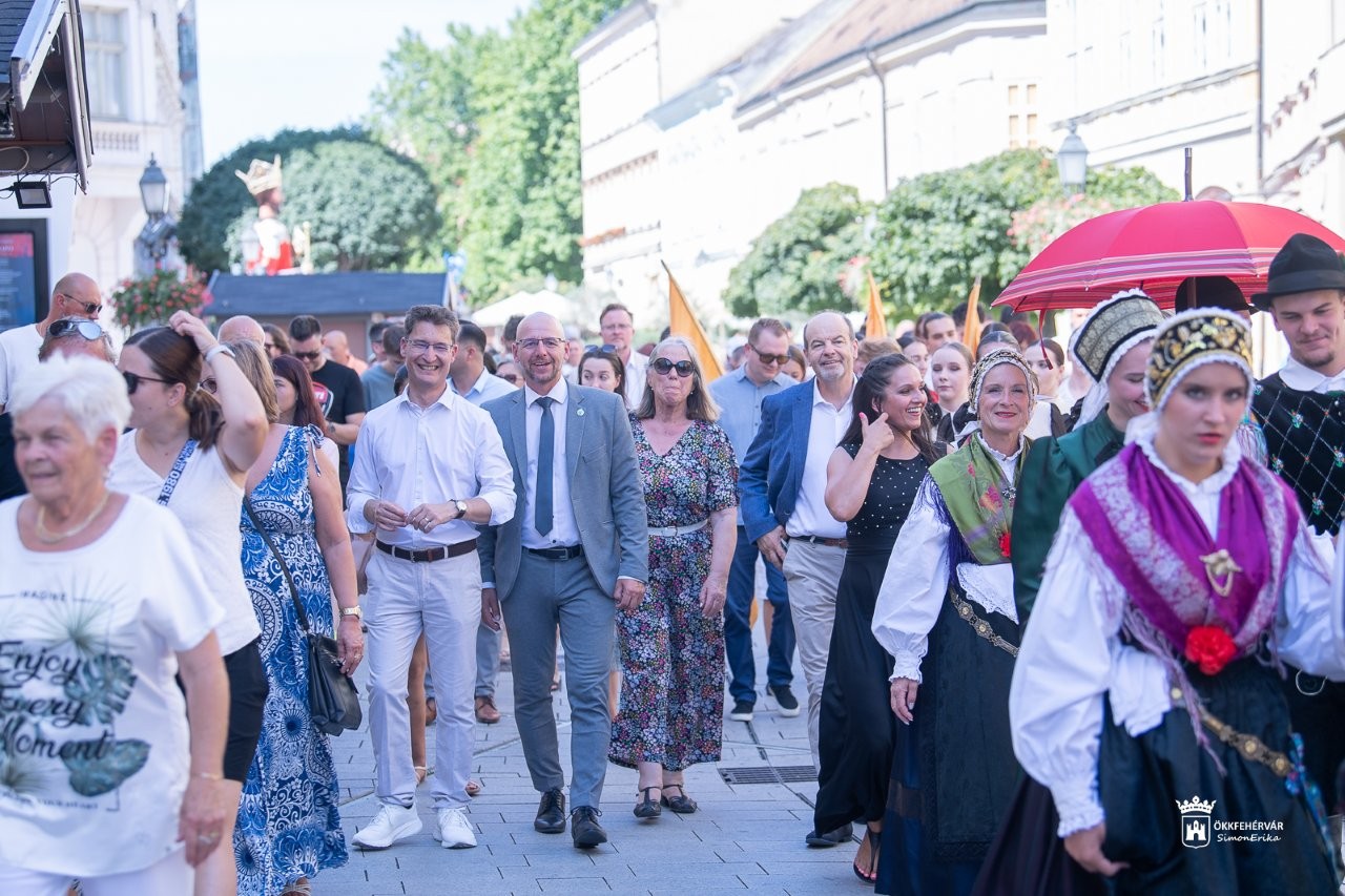 A küldöttségek és művészeti csoportok a Királyok és királynék köszöntése című felvonuláson vettek részt a történelmi óriásbábokkal együtt, a sokszínű zenés-táncos menet a Hotel Mercure Magyar Királytól a Fő utcán át vezetett a Városház térig. Útközben a Fő utcán álló bábokat egy-egy rövid előadással köszöntötték a testvérvárosok táncosai. A menet ezután megérkezett a Bartók Béla térre, ahol a külföldi vendégcsoportok Fejér vármegyei fellépőkkel együtt adtak zárógálát.
