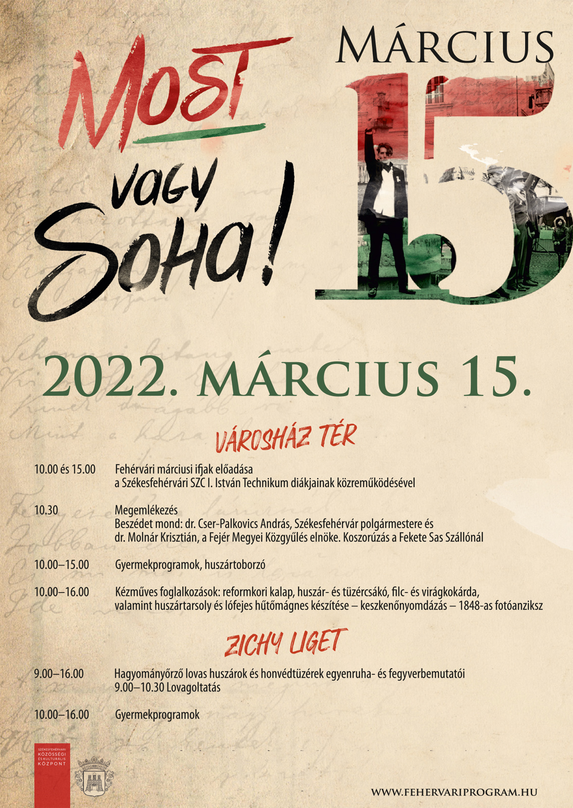 Az elmúlt két évben a hagyományoktól eltérően a város közössége nem ünnepelhetett együtt március 15-én: a járvány miatt elmaradt az Én, Petőfi című darab bemutatója, amelyből 2021-ben Matuz János, a Székesfehérvári Közösségi és Kulturális Központ (SZKKK) művészeti intendánsa írt tévéjátékot, ezt a Fehérvár Televízióban mutatták be. Ebben az évben újra személyesen élhetjük meg az ünnepet, az utcaszínház visszatér a Városház térre, hogy a fehérvári diákokkal a főszerepben megidézze a 174 évvel ezelőtti történelemfordító nap eseményeit.