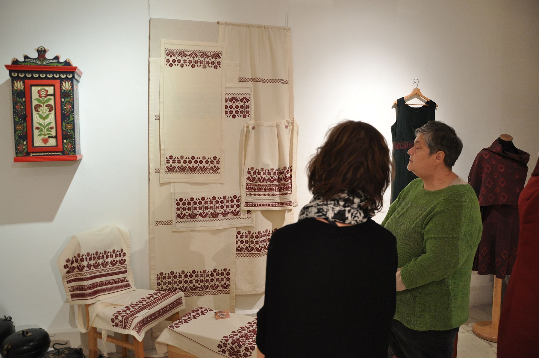 Hímzések, szőttesek, díszített tojások, bőrdíszműves és nemezelt munkák, csuhé tárgyak, gyöngy ékszerek kaptak helyet a tárlatban, modern és autentikus változatban egyaránt: „Nagy az igény az emberekben, hogy legyenek szerethető tárgyaik a háztartásokban – a kézzel készített tárgyak titka és csodája, hogy valós emberi munkák, bennük van az alkotó egyénisége.” – fogalmazott Gonda Emma népművelő, a házigazda M-ART Egyesület képviseletében az élő népművészetről.
