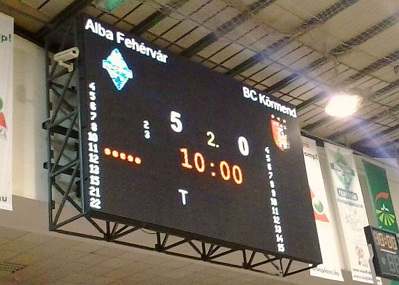 Ez olyan eleme a felújított sportcsarnoknak, ami biztosan nem kerüli el senki figyelmét! Két napon át tartott az összeszerelés és a felhelyezés, de megérte a fáradozást, hiszen impozáns látványt nyújt a Vodafone Sportcentrum új, modern eredményjelzője. A 24 panelből összerakott LED-fal a Körmend elleni bajnokin debütál, akárcsak a hangosítás, az új világítás - nemcsak komfortosabb, de korszerűbb is lett a csarnok.