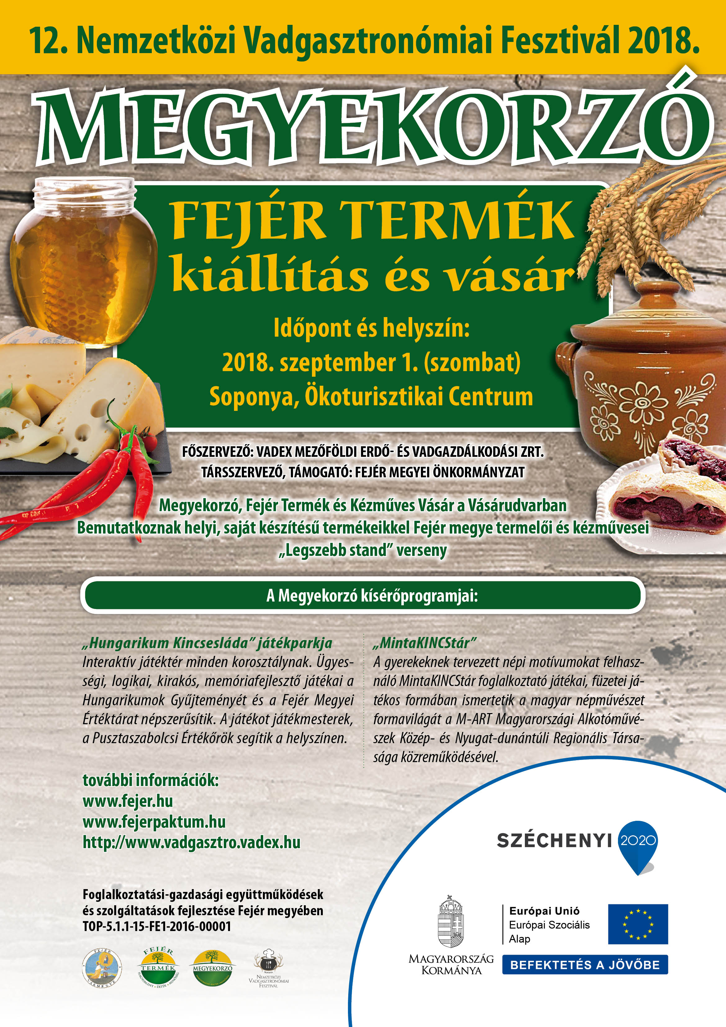 Az idei évben a Fejér Megyei Önkormányzat társrendezésében, megyénk termékeit és értékeit bemutató vásárral, a Megyekorzóval valamint a Hungarikum és a MintaKINCStár játékparkjával is várja a látogatókat Soponya. Kiválasztják a „Megyekorzó legszebb standját” is.