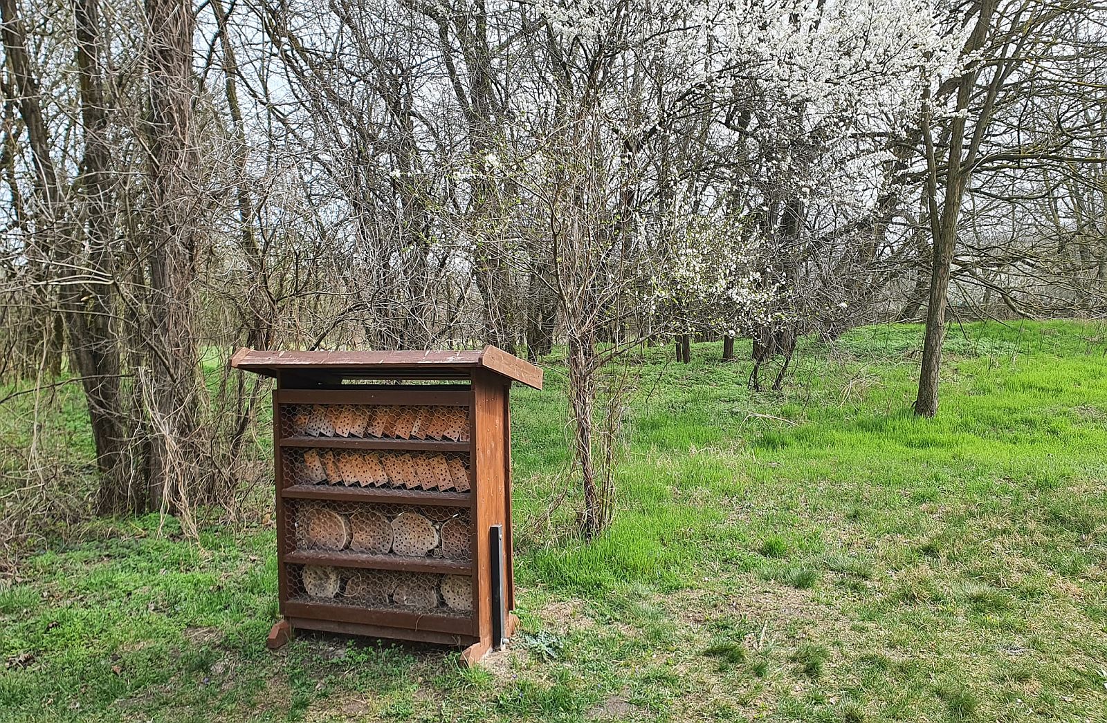 A réten található, szépen belakott rovarhotelben is sok fajt lehetett megfigyelni.