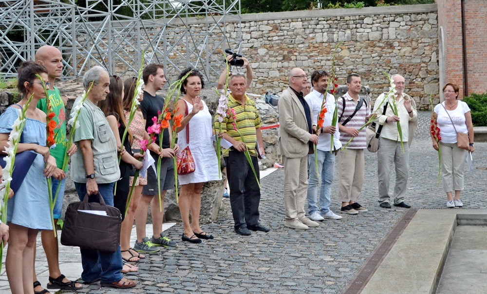 Az olvasópróbát követően az alkotócsapat kisétált a Nemzeti Emlékhelyre és mindenki elhelyezett egy szál virágot az osszáriumon, majd elkezdődött az első jelenetek rendelkezőpróbája.