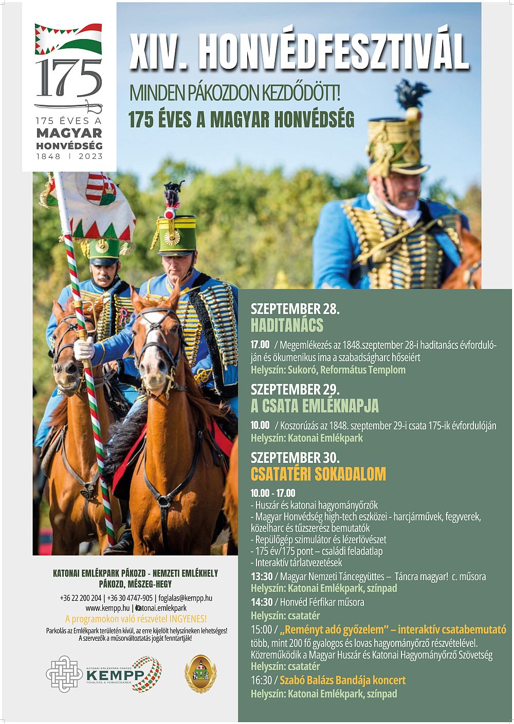 A délután folyamán fellép a Magyar Nemzeti Táncegyüttes és a Honvéd Férfikar. 15.00 órakor „Reményt adó győzelem” – interaktív csatabemutató több mint 200 fő gyalogos és lovas hagyományőrző részvételével, majd 16.30 órától Szabó Balázs Bandájának koncertje zárja a programokat. Parkolni a KEMPP területén kívül, a kijelölt parkolóban lehetséges. A rendezvényekre díjmentes a belépés, szeretettel invitálnak minden érdeklődőt!