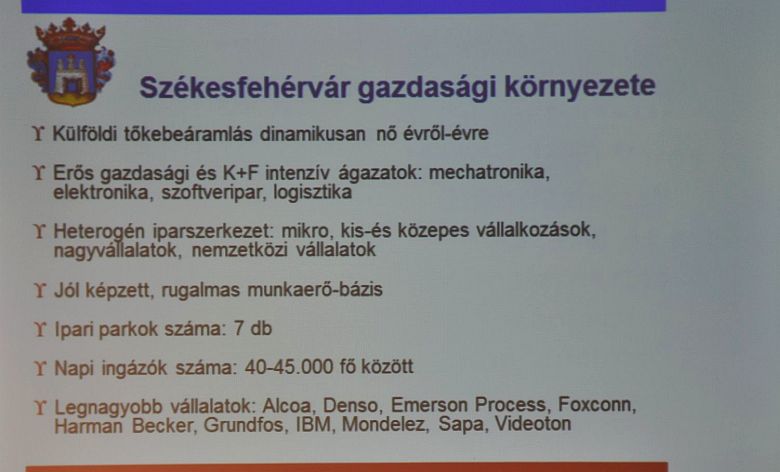 A társaság Fejér megyei elnöke Madarász László elmondta, most, az új uniós pénzügyi időszak kezdetén különösen aktuális a konzultáció. Székesfehérvár polgármestere Cser-Palkovics András is a párbeszéd fontosságát hangsúlyozta a városvezetés és a gazdasági élet szereplői között. A 2014 és 2020 közötti pénzügyi időszak egyik legfontosabb változása, hogy a települések maguk dönthetik el, milyen fejlesztésekre szeretnének pályázati forrást igényelni.