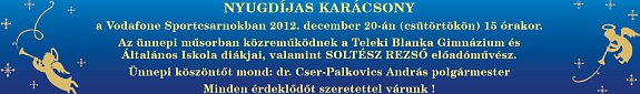 Soltész Rezső előadóművész lesz az idei Városi Nyugdíjas Karácsony meghívott előadója. A rendezvénynek ezúttal is a Vodafone Sportcsarnok ad otthont december 20-án, csütörtökön 15 órakor. Az ünnepi műsorban közreműködnek a Teleki Blanka Gimnázium és Általános Iskola diákjai is. A karácsonyi ünnepségen dr. Cser-Palkovics András polgármester köszönti majd a nyugdíjasokat, minden érdeklődőt szeretettel várnak.