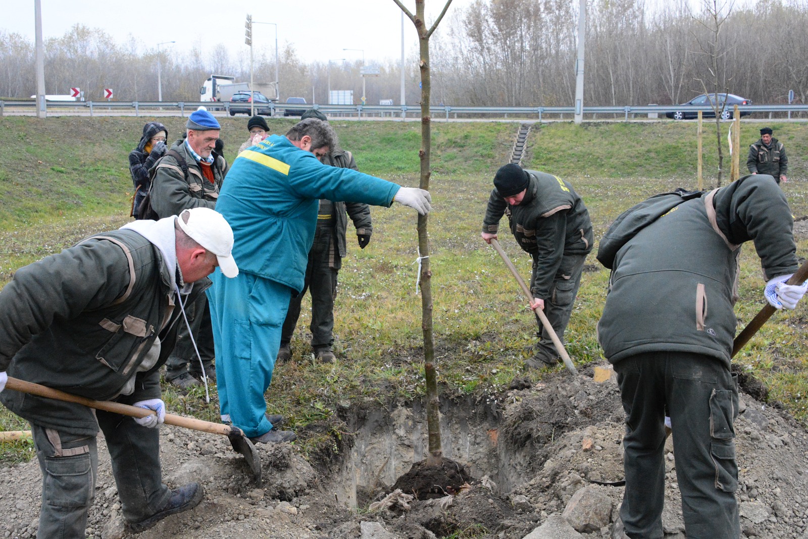 A körforgalom mellé 21 tölgyfát, égert és platánt ültettek csütörtökön délelőtt. A terület alkalmas arra, hogy nagyra növő fákat telepítsenek, a talaj pedig vizes, így minden bizonnyal csodálatos liget alakul majd ki itt. A közösségi ház udvarában pénteken ültetnek fákat. Oda összesen 50 darab kőris, juhar, díszalma, galagonya, tiszafa, díszcseresznye és hárs kerül. A fajtakínálat rendkívül bőséges, hiszen az iskolásoknak oktatási céllal is szeretnék majd mutatni a fákat. A bicikliút mellé keskenylevelű éger fasor került, ami a tapasztalatok szerint nagyon jól tűri a városi klímát.