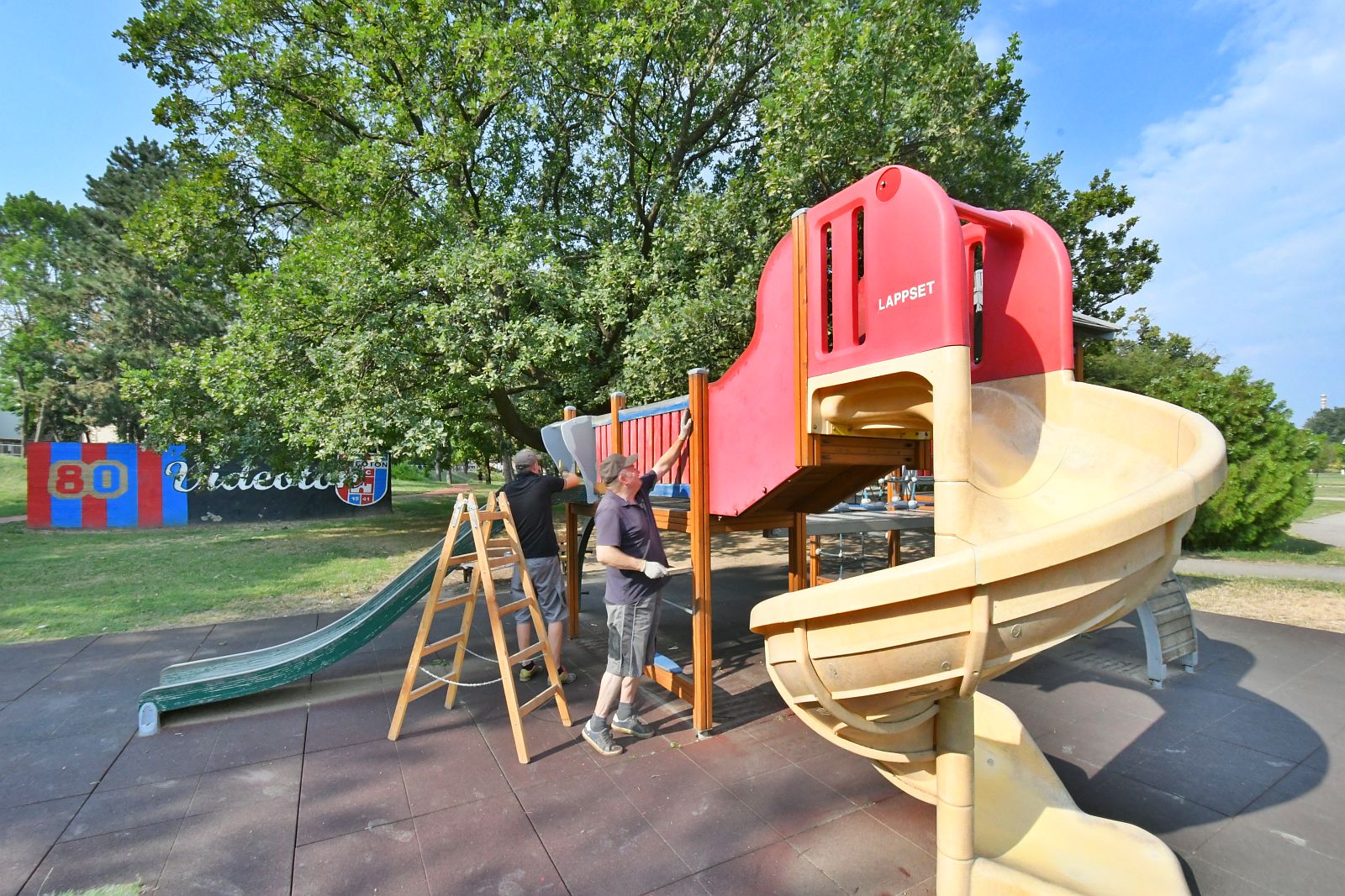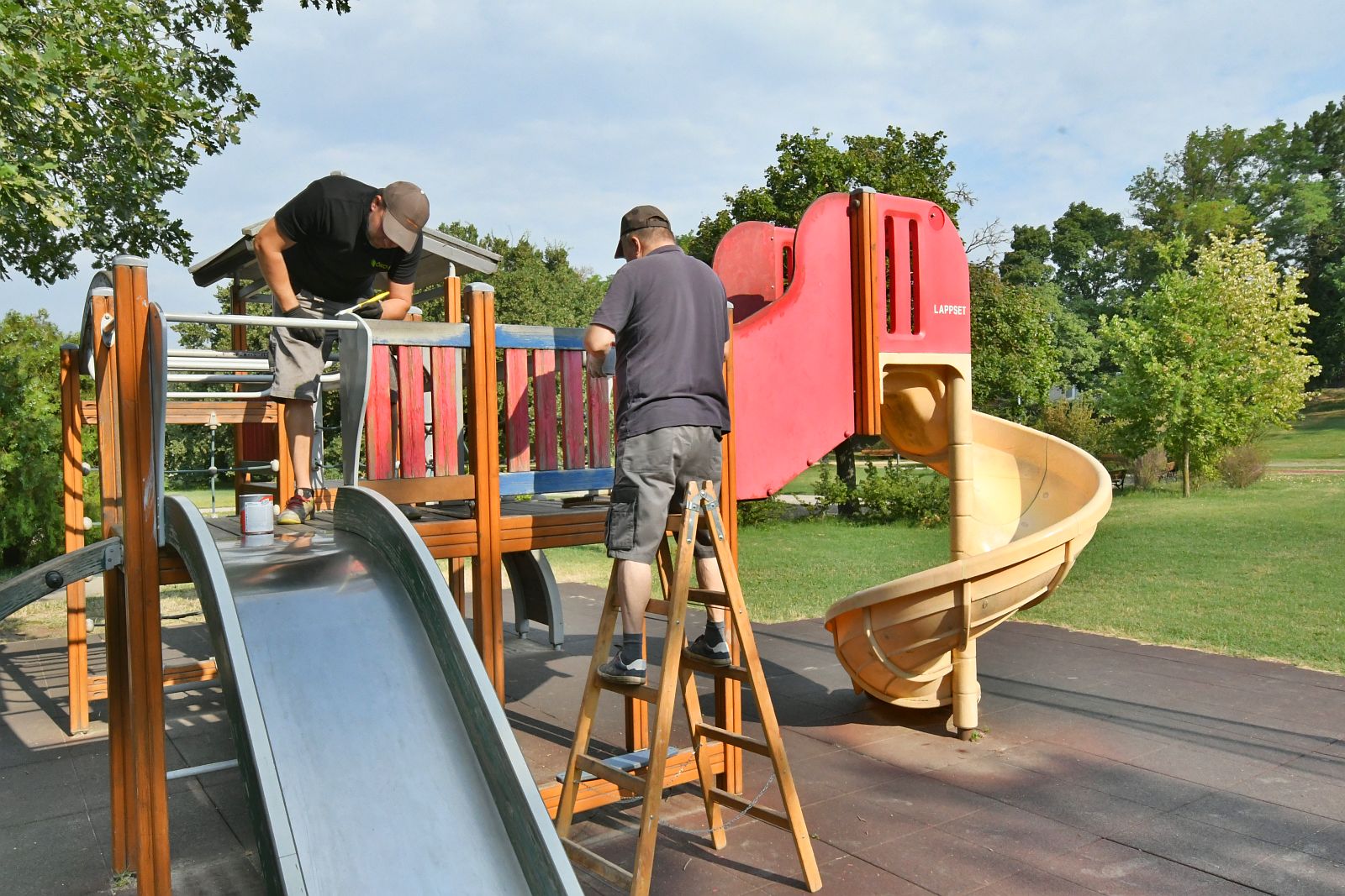 Idén nyáron Fehérváron több helyen is végez a Városgondnokság játszóeszköz festést.