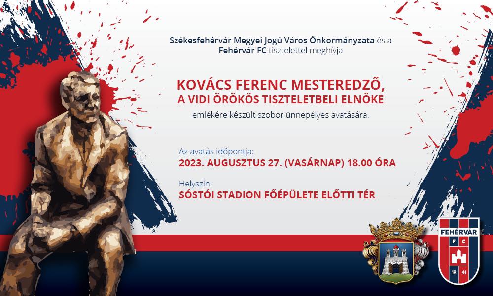 Még tavaly, 2022 áprilisában született közgyűlési határozat a legendás vezetőedző, Kovács Ferenc szobrának felállításáról. Nagy Benedek szobrászmester műve elkészült, vasárnap, a Mezőkövesd elleni mérkőzés előtt pedig mindenkinek lehetősége nyíliik megtekinteni. Az ünnepség nyilvános, Székesfehérvár Megyei Jogú Városa és a Fehérvár FC is szeretettel vár minden Vidi-szurkolót és érdeklődőt az eseményre.