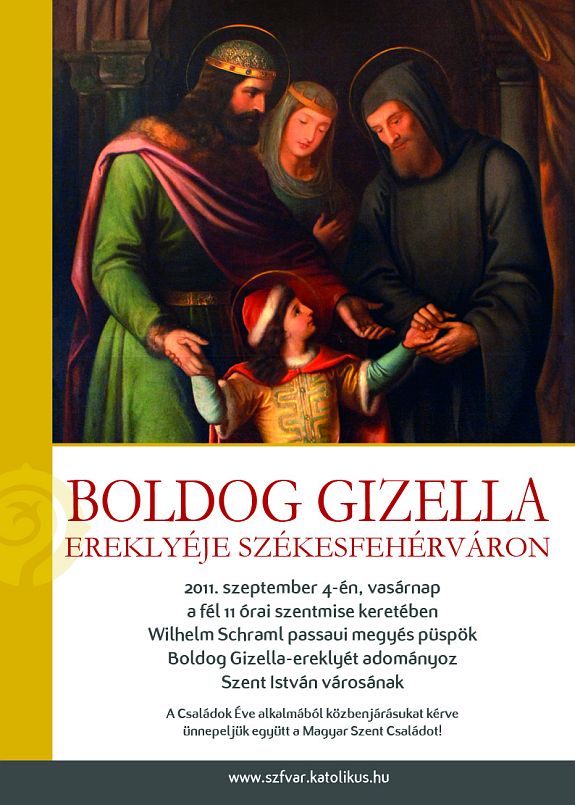 A Családok Éve alkalmából Wilhelm Schraml passaui püspök Boldog Gizella-ereklyét ajándékoz a Székesfehérvári Egyházmegyének Spányi Antal megyéspüspök kérésére. Ünnepélyes átadására 2011. szeptember 4-én, szentmise keretében kerül sor a székesegyházban.