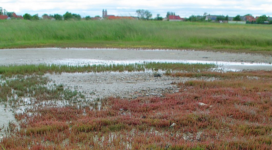 Egy darabka szikes puszta a Felsővárosban, előtérben sótűrő növényekkel, mögöttük vakszikfolttal