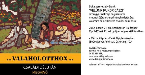 Április 21-én szombaton 15 órakor sok szeretettel várnak minden érdeklődőt a Városi Képtárba, Rippl-Rónai József gyűjteményes kiállítására. Ekkor kerül sor a “Velünk kukoricázz!”című gyermekrajz pályázat megnyitójára és eredményhirdetésére, valamint az azt követő családi délutánra. A családi délután a Terembura Kulturális és Múzeumkommunikációs Egyesület közreműködésével valósul meg.