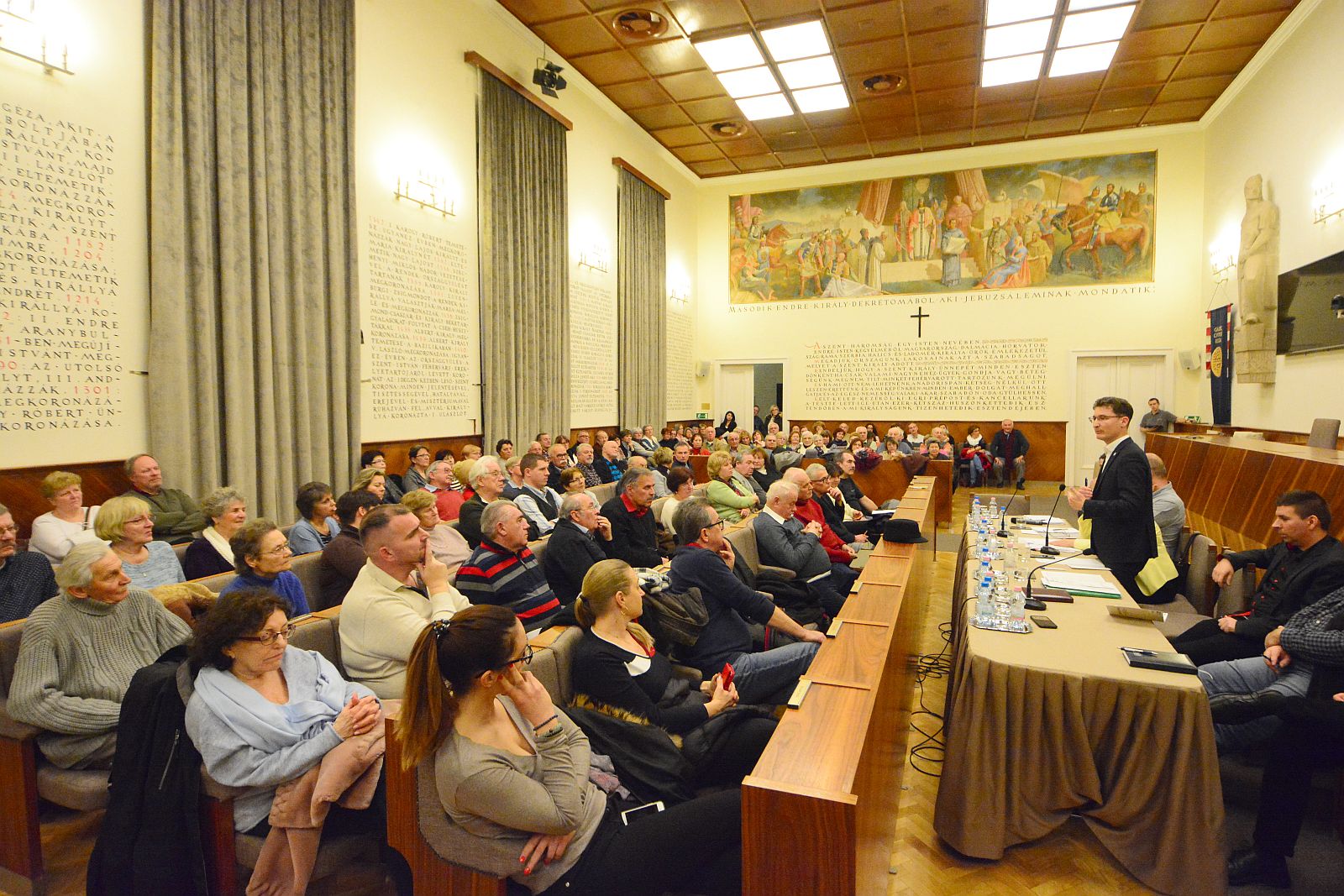Cser-Palkovics András polgármester a fórum elején elmondta, hogy az év első lakossági fórumát szimbolikusan is a Belvárosban tartják és két fontos kérdés a legfőbb téma: az egyik a parkolással a másik pedig a belvárosi vendéglátóhelyek nyitvatartásával kapcsolatos. Kiemelte, hogy február 14-én tárgyalja majd a testület az új önkormányzati ciklus első költségvetését, melyben szerepel, hogy azok a folyamatban lévő beruházások, melyek elkezdődtek folytatódnak a Belvárosban. Ilyen például a Bartók Béla tér idén befejeződő felújítása és zöldebbé tétele, illetve a Fő utcán a Szent István Király Múzeum rendház épületének a felújítása is. A múzeum kiköltözése után három hónappal adják majd át a munkaterületet a kivitelezőnek, amiről a szomszédos lakókkal is egyeztetnek még a kivitelezés kezdete előtt.