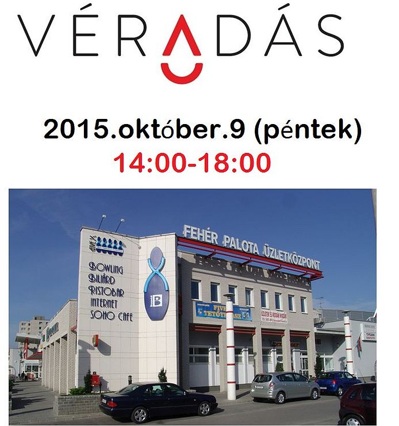 Véradást tartanak október 9-én, pénteken a Fehér Palota Üzletközpontban. A segíteni szándékozókat 14.00 és 18.00 óra között várják az épület emeletén. Véradásra jelentkezhet minden 18 és 65 év közötti, legalább 50 kg testsúlyú egészséges felnőtt. A férfiak legfeljebb ötször, a hölgyek maximum három alkalommal adhatnak vért évente.