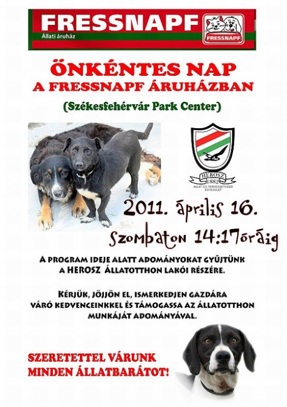A Herosz Állatotthon egy másik programmal is készül. Önkéntes napot szervez április 16-án (szombaton) egy nagyáruházzal közösen. Várják a gyerekeket, a családokat!