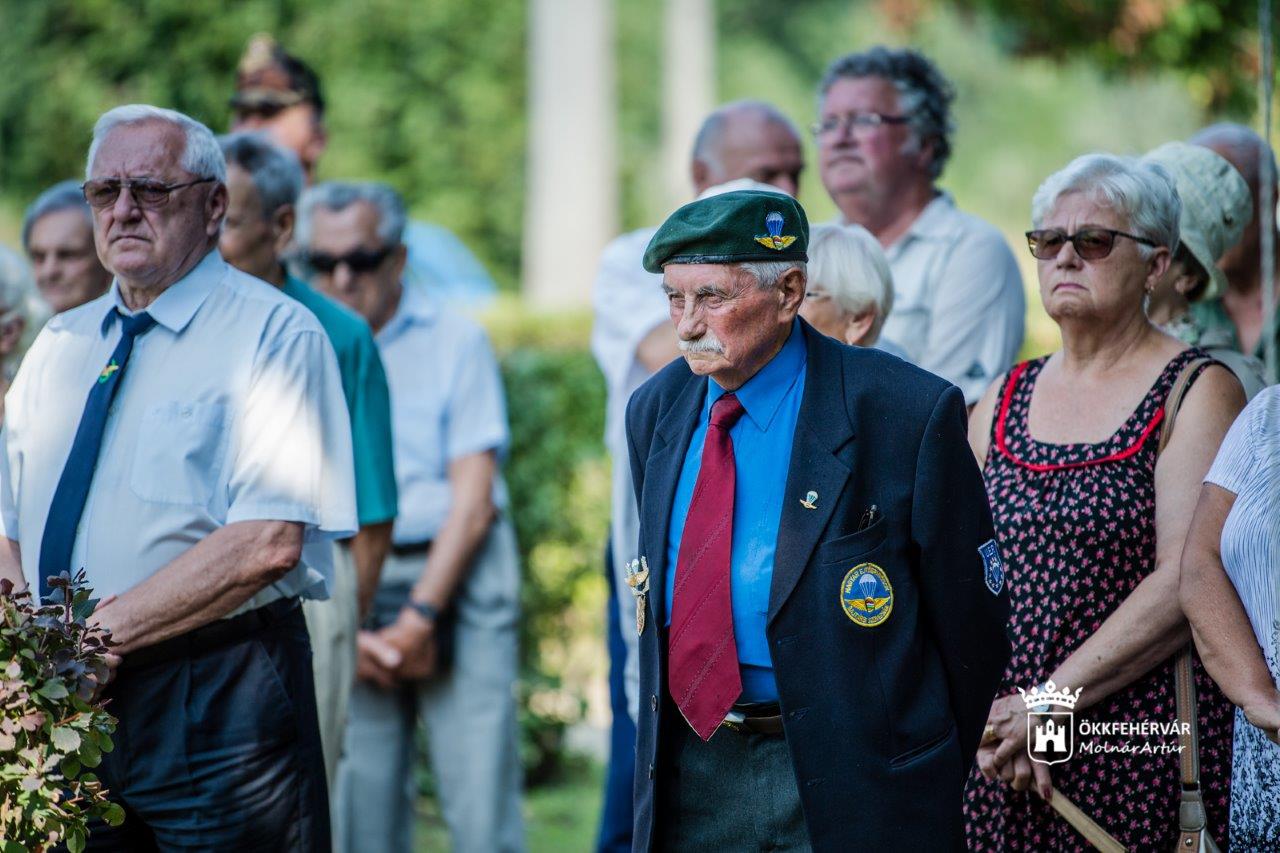 Az emlékműnél Székesfehérvár Önkormányzata nevében Horváth Miklós Csaba helyezett el koszorút. Megemlékezett a helyszínen a szervező Veterán Repülők és Ejtőernyősök Fejér Megyei Egyesülete, az Albatrosz Repülő Egyesület, a Veterán Repülők és Ejtőernyősök Veszprémi Egyesülete, valamint a Magyar Ejtőernyősök Bajtársi Szövetsége is.