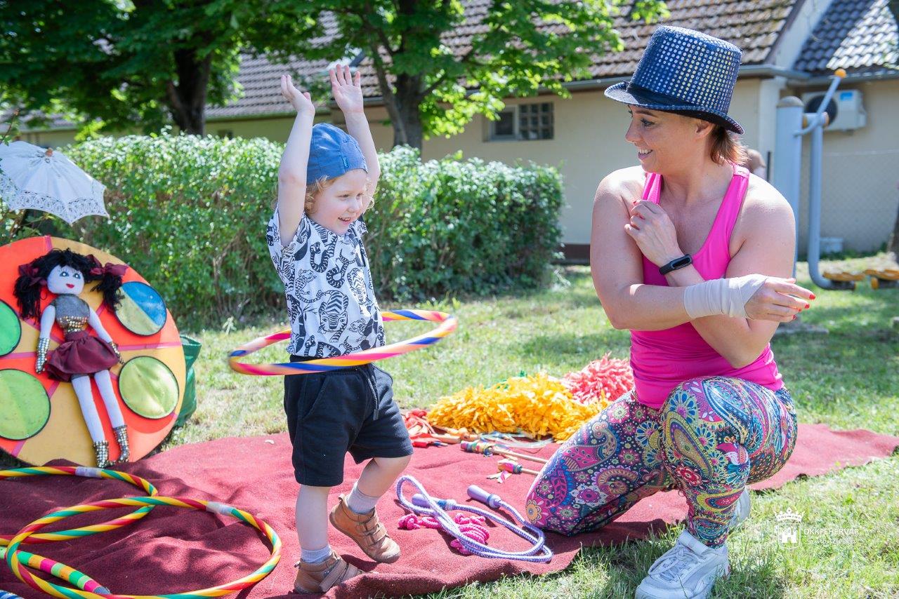 A művelődési ház kertjében estig várja „diákjait” a varázslatos cirkuszi akadémia, az ugrálóvár és a óriásbuborék-játszó, de lehetőség van arcfestésre, homokkép készítésére és ólomkatona-öntésre is.