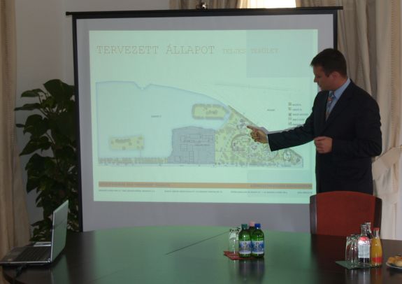 Varga Zsolt, az Euréka Kft képviseletében elmondta, hogy hatékony munkakapcsolat alakult ki az önkormányzattal. A cég képviseletében részt vett a városfejlesztési bizottságnak a projektet előkészítő ülésein. A város megbízta a céget azzal is, hogy dolgozza ki a vidámpark teljes rehabilitációs tervét és a teljes terület geodéziai felmérését.A Szabadidőközpont építésével kapcsolatban elmondta, hogy olyan fallabda centrumot építenének, ahol nemzetközi versenyek lebonyolítására is megfelelőek lennének a pályák. A Kalandbark és a szabadidőcentrum területén megépül mejd a futópálya és a tópartra a városlakók bárhol le tudnának majd sétálni. A parkolók kapcsán kiemelte, hogy az útra merőlegesen alakítanák ki az autók helyét, így háromszor annyi gépjármű férne el a Kalandpark és Szabadidőcentrum mellett, mintha az úttal párhuzamosan lehetne parkolni. A beruházás jövő év végén 2009 elején fejeződne be a tervek szerint és az önkormányzat is ekkorra teszi a Kalandpark elkészülésének idejét.