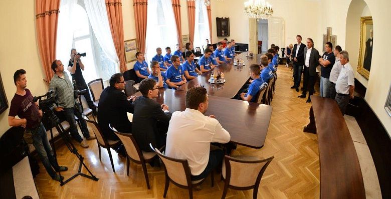 A Vidi egyenpólóba öltözött, kicsit talán megilletődött fiataljai Cser-Palkovics András polgármester, Bóka Viktor jegyző és Mészáros Attila ifjúsági tanácsnok jelenlétében foglaltak helyet a kistanácsterem asztalánál, és hallgatták a köszöntő szavakat. A polgármester kiemelte, az utánpótlás-siekr mindig előre vetíti, hogy egyszer talán sok fehérvári kötődésű, kiváló játékosa lesz a Videoton felnőtt csapatának, ami mindig nagyon fontos a szurkolóknak. "Külön öröm, hogy az utánpótlás szakmai stábjában a Vidi múltjának meghatározó alakjai kapnak szerepet, mindenképpen ez a jövő útja. Szeretnénk a város részéről ezt a munkát támogatni. Már zajlanak a stadion felújításának előkészületei, dolgoznak a tervezők. Reményeink szerint ősszel nyilvánosak lesznek az első kész tervek, az ötleteket, javaslatokat figyelembe véve 2016 második felére elkészülhet a szép, új létesítmény. Az a játékosokon múlik, hogy ebben majd sok teltházas meccs legyen, ehhez is kellenek a helyi kötődésű labdarúgók" - mondta Cser-Palkovics András.