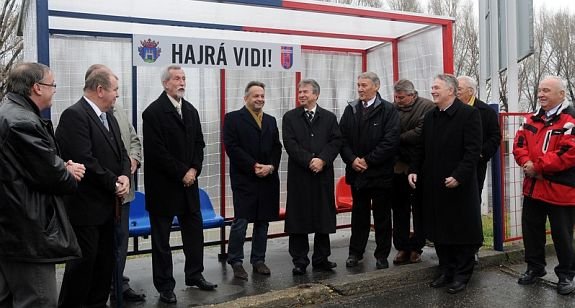 Futballkaput szimbolizáló buszmegállót adtak át szerdán a Sóstói Stadion előtt a Csíkvári úton. A piros-kék Vidi-megállót Warvasovszky Tihamér polgármester, Tóth István az Alba Volán vezérigazgatója és Berzi Sándor a Videoton ügyvezetője együtt adta át a szurkolóknak.