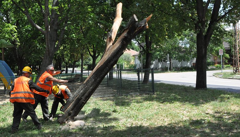 Megbecsülni sem lehet még, hogy hány köbméternyi ágat és levelet szakított le a város közterületein található fáiról a múlt heti vihar, azonban az biztos, hogy több mint száz, fát gyökerestül döntött ki az ítéletidő - mondta Griger László a Városgondnokság parkfenntartási csoportvezetője. „A megtépázott fák koronáját is minden esetben átvizsgáljuk és ha szükséges emelőkosárból vágják le a balesetveszélyes ágakat a szakemberek, ami szintén nagy feladatot jelent parkfenntartáson dolgozó kollégáinknak. Kora reggeltől dolgozunk minden nap azon, hogy a lehető leghamarabb végezzünk a takarítással.”