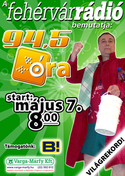 Világrekord felállítására készül Nyeste Attila a Fehérvár Rádió műsorvezetője. A DJ a tervek szerint 94.5 órán keresztül megszakítás nélkül vezet műsort a 94.5 Mhz-en. Az egyedülálló rekordkísérlet május 7-én reggel nyolc órakor indul és siker esetén május 11-én reggel fél hétig tart majd.