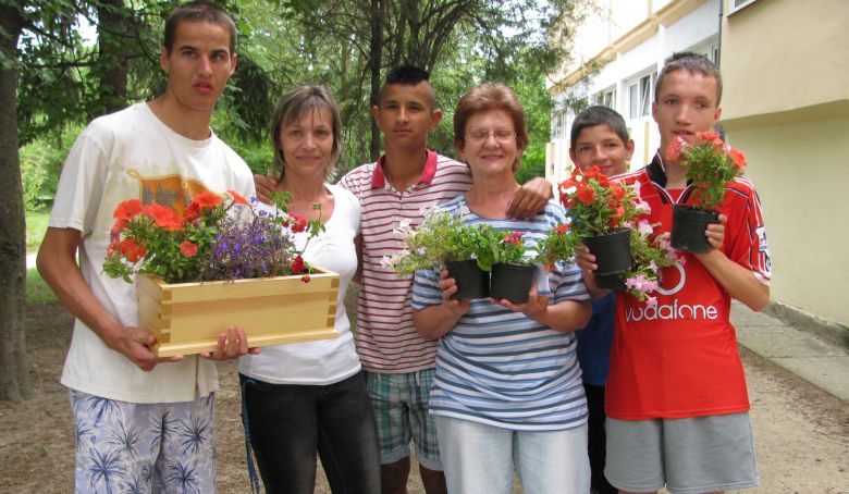 A Bioritmusban nevelt 60 tő muskátli, petúnia és különböző színes egynyári növényekkel beültetett ládikók egész nyáron vidámságot csempészhetnek a saját szüleik nélkül nevelkedő gyermekek és fiatalok életébe. A gyerekeknek a beszélgetésen kívül sárgabarackkal és édességgel is kedveskedtek.