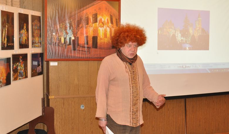 A tárlatnyitó alkalmából előadást tartott Szepesi Imre, a Méhkasaula Kulturális Közhasznú Egyesület elnöke, aki elmondta, hogy a Méhkasaula dia projectje a party kultúrából a street art-ba került architekturális vetítéseket valósít meg köztereken és bel térben egyaránt. A vetített diakép, fénymontázst alkotva az épületek belső és külső falain un. „tapéta” jelleggel fénybe csomagolja a környezetet.