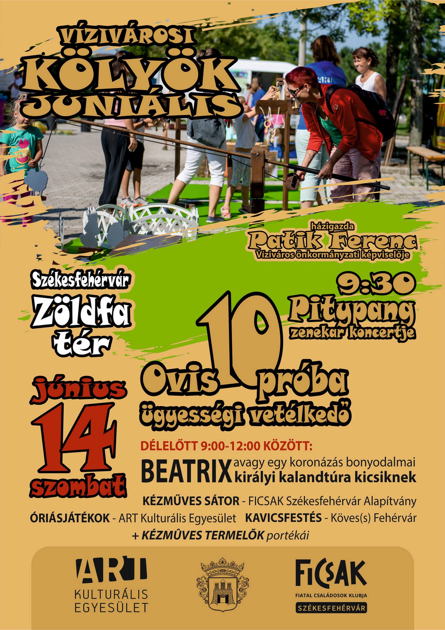 A szombaton délelőtt 9.00 órától, a Zöldfa téren kezdődő rendezvényen egész nap óriásjátékok várják a családokat az ART Kulturális Egyesület szervezésében, és lesz kézműves sátor (FICSAK Székesfehérvár Alapítvány), valamint kavicsfestés is (Köves(s) Fehérvár). 09.30-tól a Pitypang zenekar ad koncertet, de a nap fénypontja minden bizonnyal az ovis tízpróba ügyességi vetélkedő lesz a legkisebbek számára. 09.00 és 12.00 óra között Beatrix, avagy egy koronázás bonyodalmai címmel királyi kalandtúrára várják a gyermekeket, a felnőttek pedig a kézműves termelők portékái között válogathatnak a juniálison.