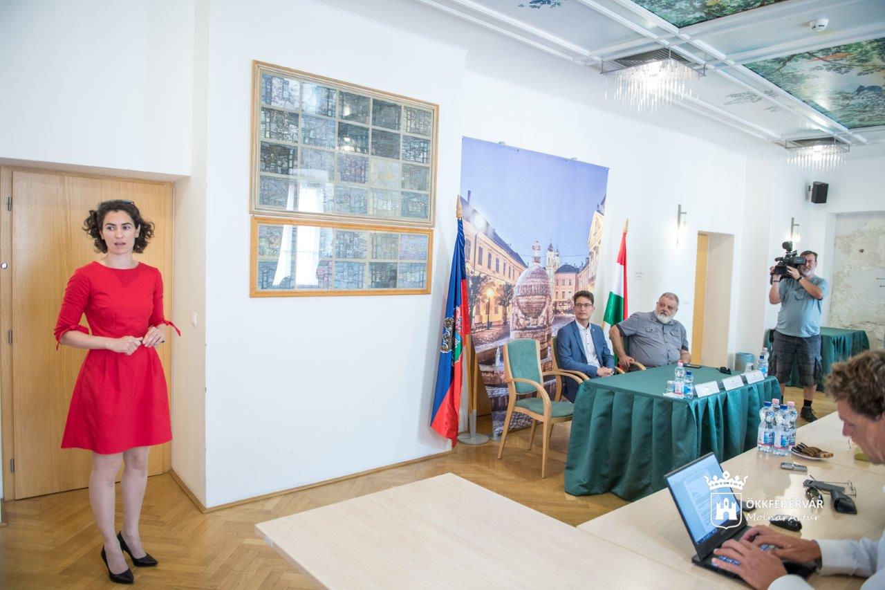 A szökőkút hangulatát, formavilágát a környező neoklasszicista épületek határozták meg. Az egyik különlegessége lesz, hogy körülötte az ellipszis egy-egy pontjából vízsugár lövell majd a medencébe. Bízom abban, hogy a fehérváriak is magukénak érzik és megszeretik majd – mondta Izmindi Réka - tervező.
