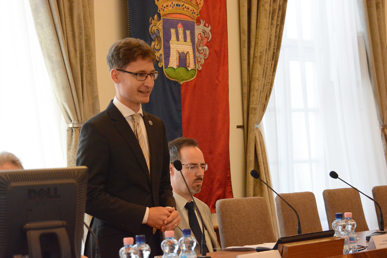 A tudományos zenei ülés első napjának helyet biztosító Városháza Dísztermében Cser-Palkovics András polgármester köszöntötte a konferencia résztvevőit. Örömét fejezte ki, hogy erre a nagyszabású „beszélgetéssorozatra” itt Székesfehérváron, a Városházán kerülhet sor.