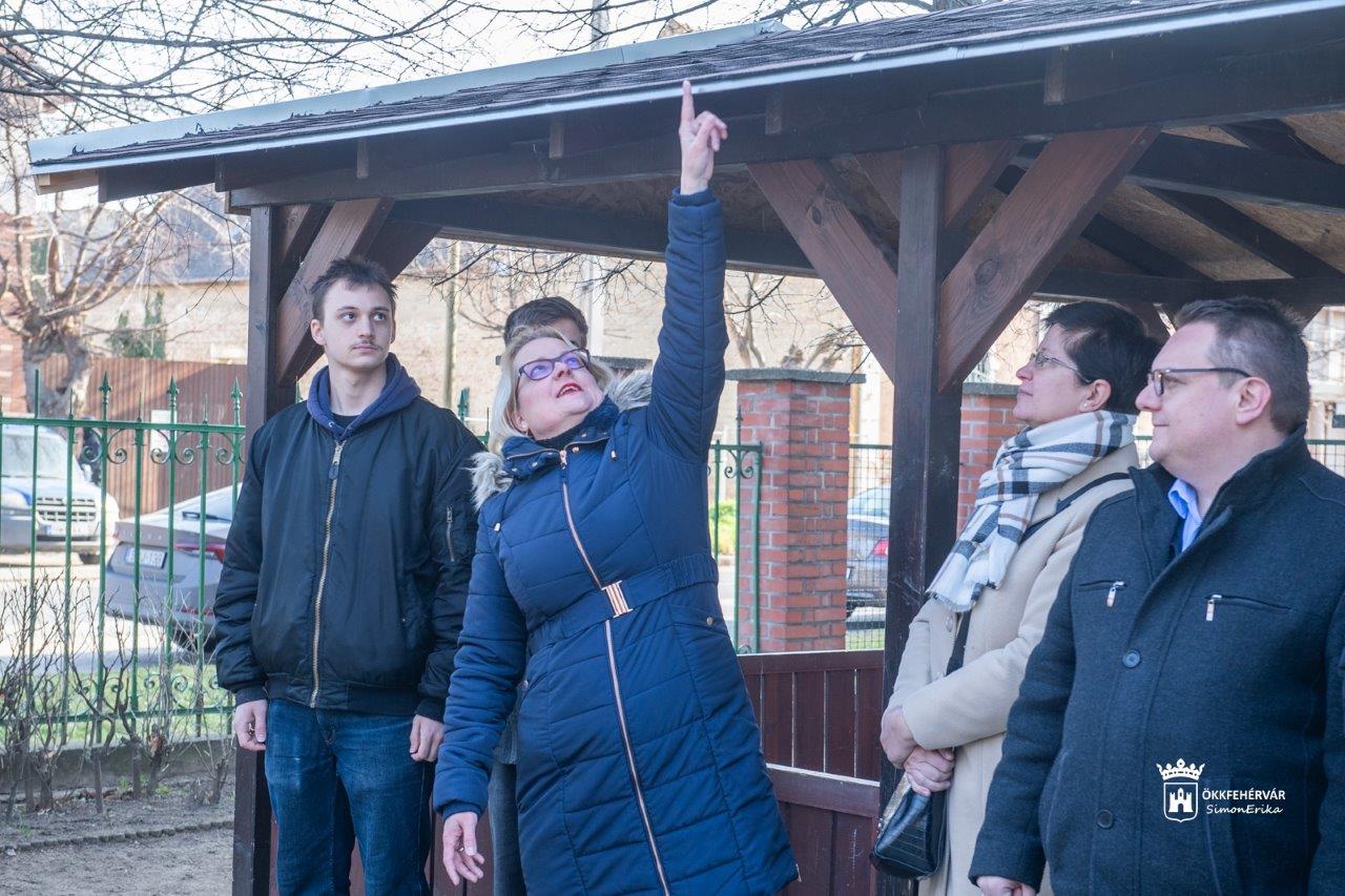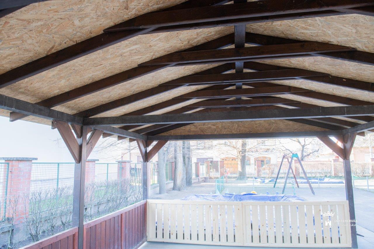 A fiatalok és oktatóik a Felsővárosi Óvoda egyik rossz állapotú, udvari játékpavilonját varázsolták újjá még tavaly novemberben, kicserélték a szerkezet tetejét, az OSB-lapokat és pótoltak egy tönkrement kerítéselemet. A megújult játékpavilont hétfőn a helyi sajtónak is bemutatták.