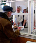 Warvasovszky Tihamér osztotta az ebédet pénteken a Kríziskezelő Központban a hajléktalanoknak