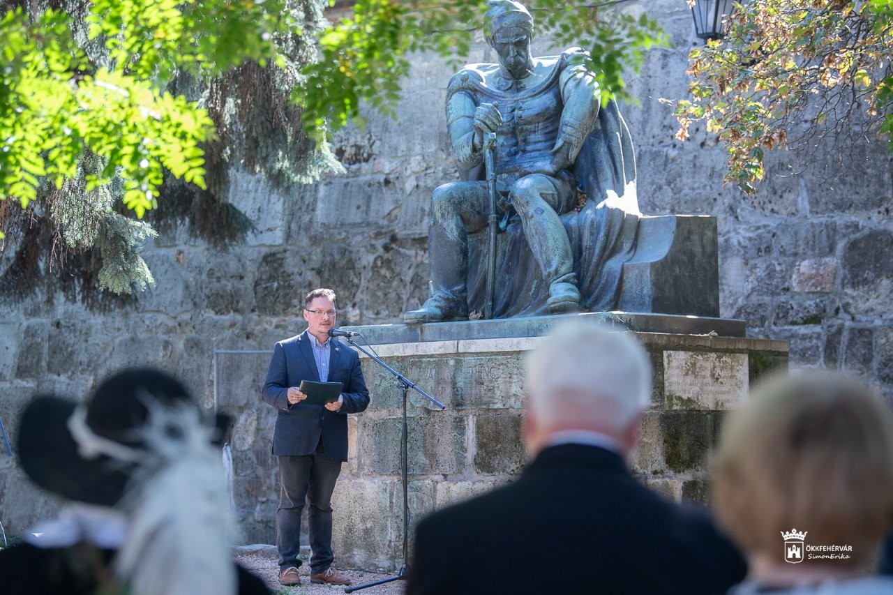 Mint ismert, Wathay Ferenc 1568. szeptember 24-én látta meg a napvilágot Vágon. Édesapja várkapitányként szolgált, a fiatal Wathay Ferenc pedig már tizenhét éves korában fegyvert ragadott. Wathay közel 20 év katonai szolgálat után lett az 1601. szeptember 21-én ideiglenesen visszafoglalt Székesfehérvár vicekapitánya. Az életéről szóló utolsó bejegyzések 1609-re tehetőek, ekkor édesapja nyomán cseszneki várkapitány lett. A történész ezt követően részletesen mutatta be a visszafoglalás körülményeit, a város körül zajló harcokat, az 1600-as évek fehérvári eseményeit. Beszéde zárásaként felhívta a figyelmet arra, hogy hőseinkre emlékezni és emlékeztetni kötelességünk. „Erre sarkall minket őseink példája, a hazaszeretet és az utódainknak való példamutatás. Ahogy a Szentírásban, a Példabeszédek könyvében olvashatjuk: Az Igaznak emléke áldott. Hajtsuk meg fejünket Fehérvár hajdani hős védői, az Igazak előtt!”