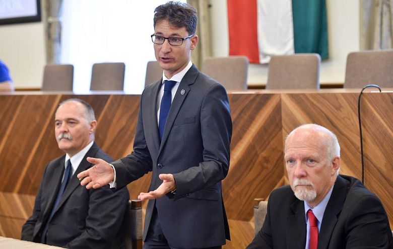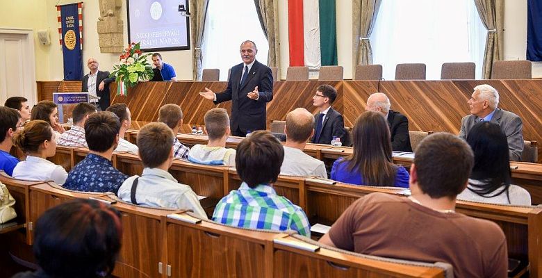 A XXVI. Kandó Kálmán Nyári Egyetem hivatalos megnyitó ünnepségen dr. Cser-Palkovics András polgármester köszöntötte a résztvevőket. „Nagy öröm számomra, hogy a Városháza Dísztermében köszönthetem Önöket! Óriási megtiszteltetést és rangot jelent számunkra, hogy először adhat otthont Székesfehérvár a Kandó Kálmán Nyári Egyetem programjainak. Azt hiszem, kevéssé alakulhatott volna kedvezőbben a tíznapos Nyári Egyetem időpontja, hiszen ezzel párhuzamosan, egészen augusztus 23-ig tartanak a Székesfehérvári Királyi Napok eseményei, melynek köszönhetően a város tele van élettel. Székesfehérvárt nyugodtan nevezhetjük a nemzet egyik történelmi fővárosának, ahol egykor a koronázások és az ahhoz kapcsolódó szakrális, valamint közéleti események is itt történtek. A Díszteremben látható történelmi feliratok azt jelzik számunkra, hogy az országhatáron belül és túl egyaránt komoly felelősségünk van. Az itt hozott döntések ugyanis meghatározták minden egyes, a magyar nemzethez tartozó ember mindennapjait. A városnak nemcsak múltja, hanem jelene is van. A sport, a kultúra és az oktatás mellett kiemelkedő jelentősége van a helyi iparnak, Székesfehérvár a magyar gazdaság egyik legnagyobb erőcentruma. Mindig nagy szükségünk volt, van és lesz is műszaki tudományokat elsajátító fiatal szakemberekre. Ezért is örülünk annak, hogy idén Székesfehérváron rendezik meg a Nyári Egyetemet, ahol kitűnő szakmai előadások várjak majd a hallgatókat.” – mondta dr. Cser-Palkovics András, aki azt is kiemelte, hogy a város kiváló partneri kapcsolatot tudott kialakítani az Óbudai Egyetemmel.