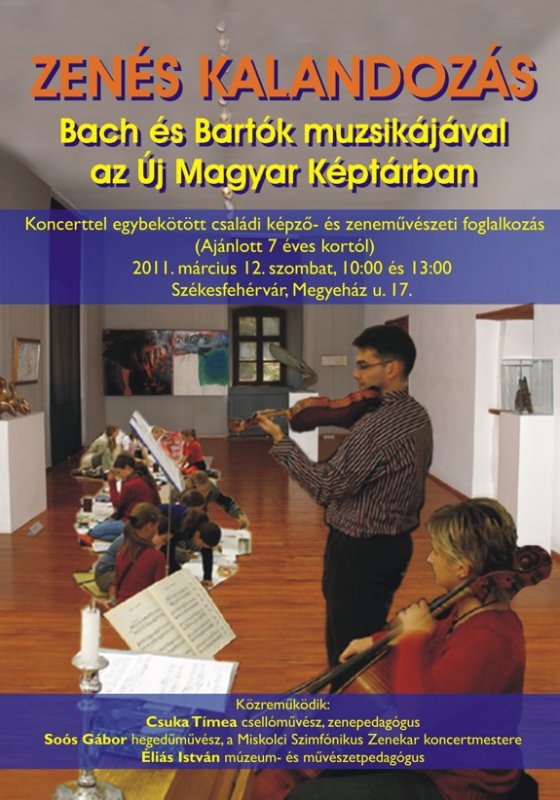 A foglalkozáson közreműködik Csuka Tímea csellóművész, zenepedagógus, Soós Gábor hegedűművész, a Miskolci Szimfonikus Zenekar koncertmestere és Éliás István múzeum- és művészetpedagógus. A rendezvény a TÁMOP-3.2.8/10/B-2010-0012 „Ilyet én is tudok festeni! Iskolai programok a kortárs képzőművészeti gyűjteményben” című projekt keretén belül valósul meg, a programra a belépés ingyenes.