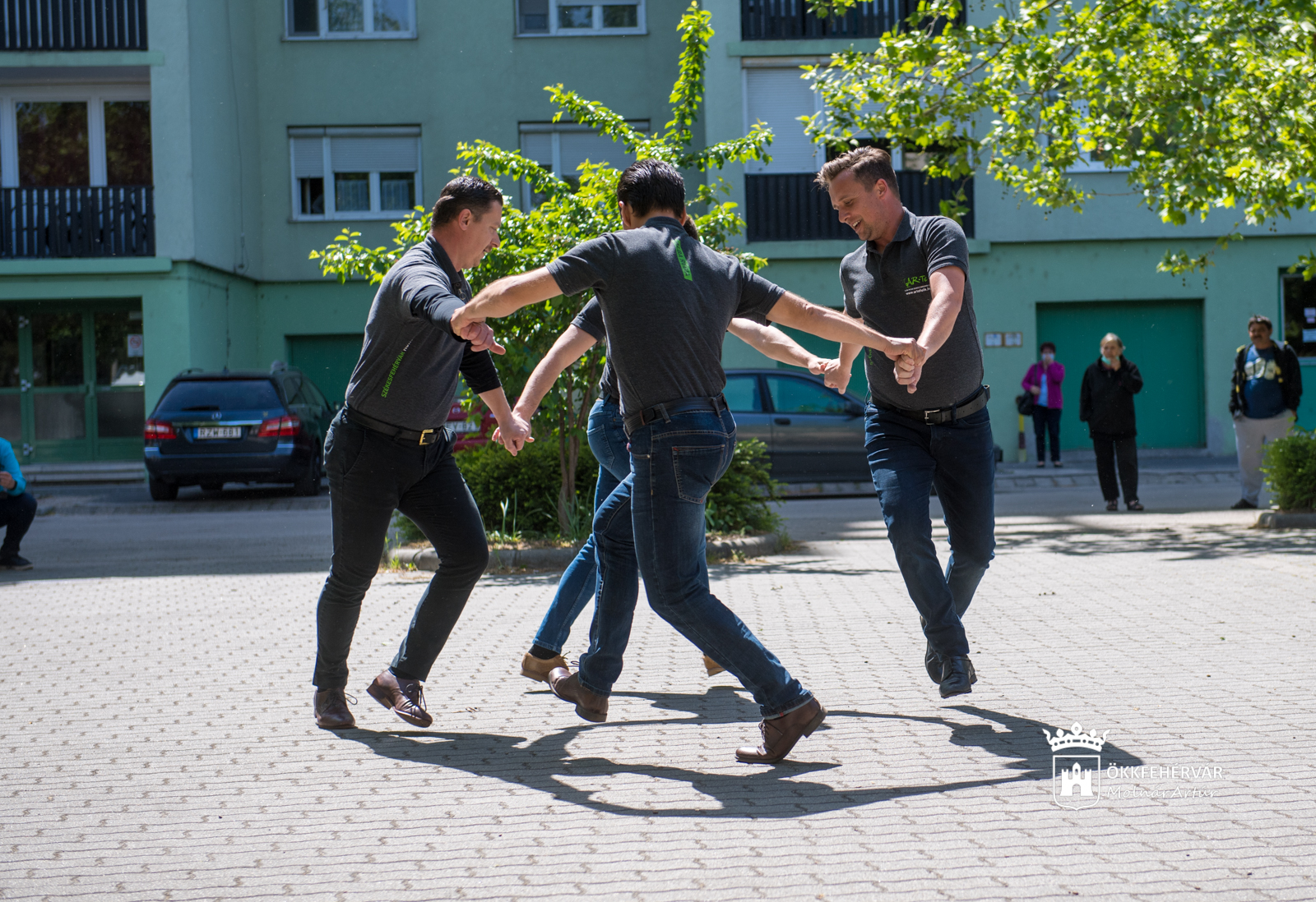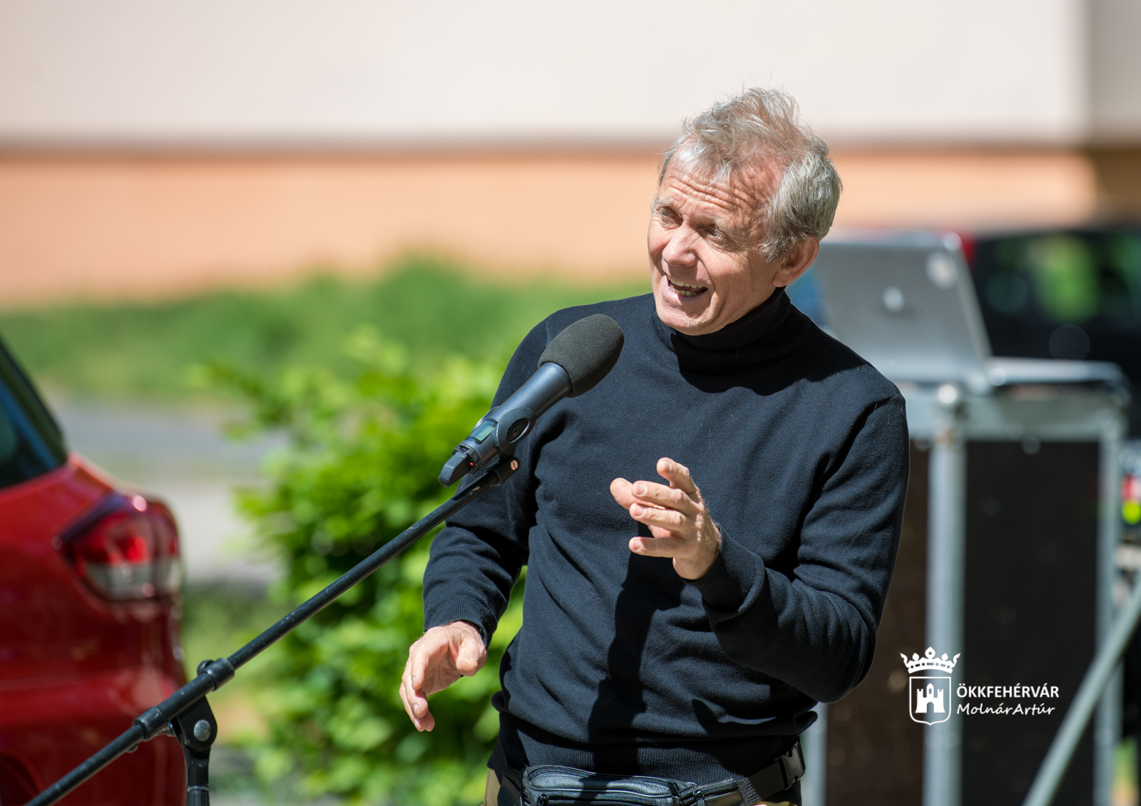 A hangulatot az erdélyi legényes néptánc alapozta meg a parkolóban rögtönzött színpadon, Kozáry Ferenc színművész egy tréfás állatmesét, majd pedig egy nosztalgikus operettslágert adott elő, Hétre ma várom a Nemzetinél...