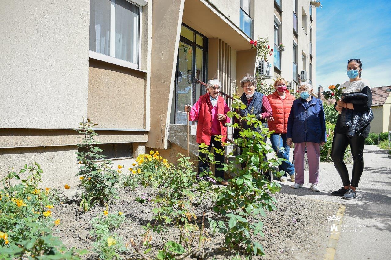 Molnár Gézáné 1999-ben költözött Szedreskertre és egy szomszédjától "örökölte meg" a társasház kiskertjének gondozását. Gömbtujákat, futórózsákat és bokorrózsákat ültetett. Most a egynyári virágokat várja, amiket május 14-től lehet átvenni a Virágos Székesfehérvár program keretén belül. Elmondta, hogy a kijárási korlátozásokat szigorúan betartotta, a gyerekei segítettek a vásárlásban is, így még több ideje maradt arra, hogy széppé varázsolja a társasház kiskertjét.