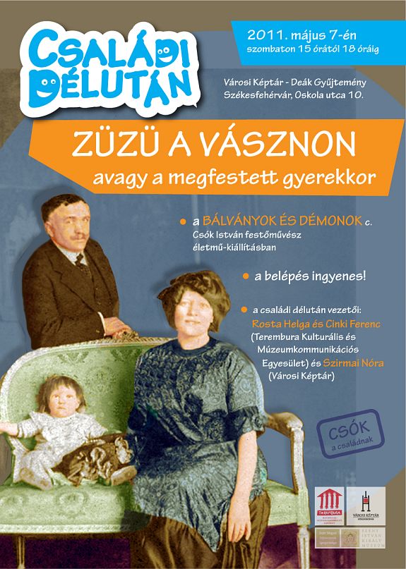 Május 7-én, szombaton délután 3 órától 6 óráig családi délutánt szerveznek a Városi Képtár – Deák Gyűjteményben "Züzü a vásznon, avagy a megfestett gyerekkor" címmel. Züzüről, az-az Csók Júliáról, a festő egyetlen gyermekéről készült képsorozat, Csók István életművének egyik legszínesebb része. A kiállításon egyébként diákcsoportok számára folyamatosan tartanak múzeumi órákat és tárlatvezetéseket melyekre a (22) 329-431 telefonszámon, vagy a Városi Képtár épületében személyesen lehet bejelentkezni.